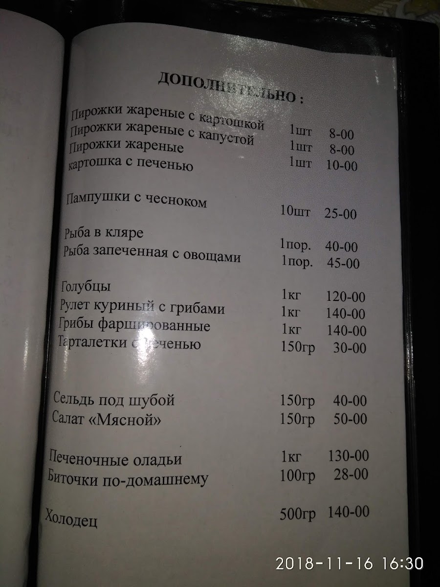 Cafe 'Akcharlak' Menu